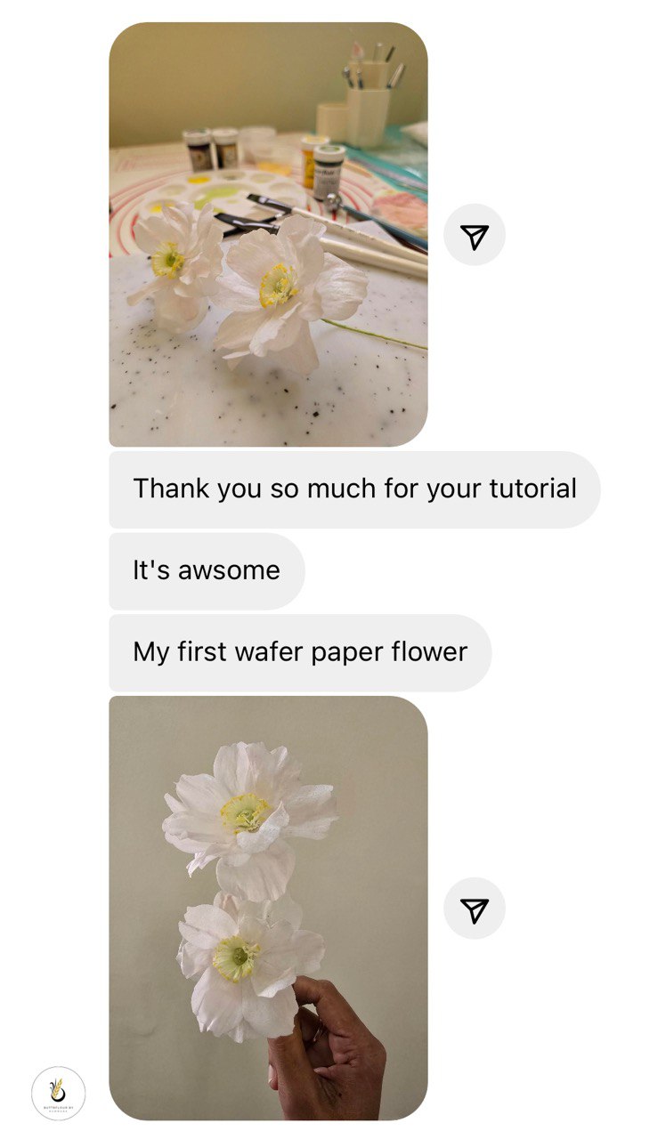 Thank you so much for your tutorial, it's awesome. My first wafer paper flower.